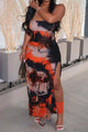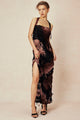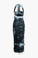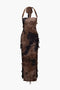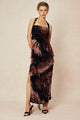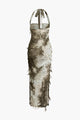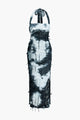 Tie Dye Distressed Mesh Slit Halter Maxi Dress