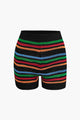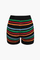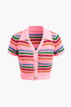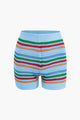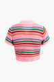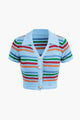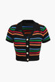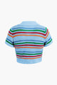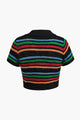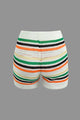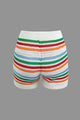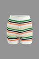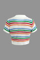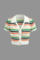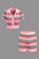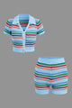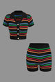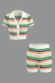 Stripe Knit Pearl Button Collar Top And Shorts Set