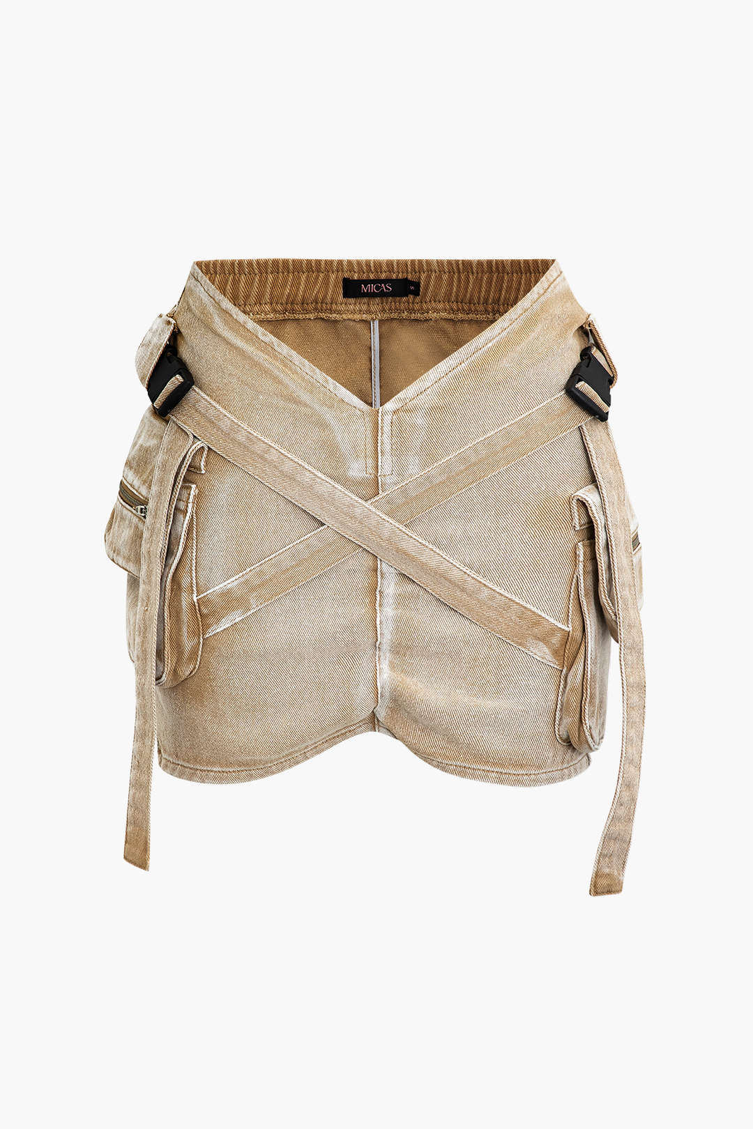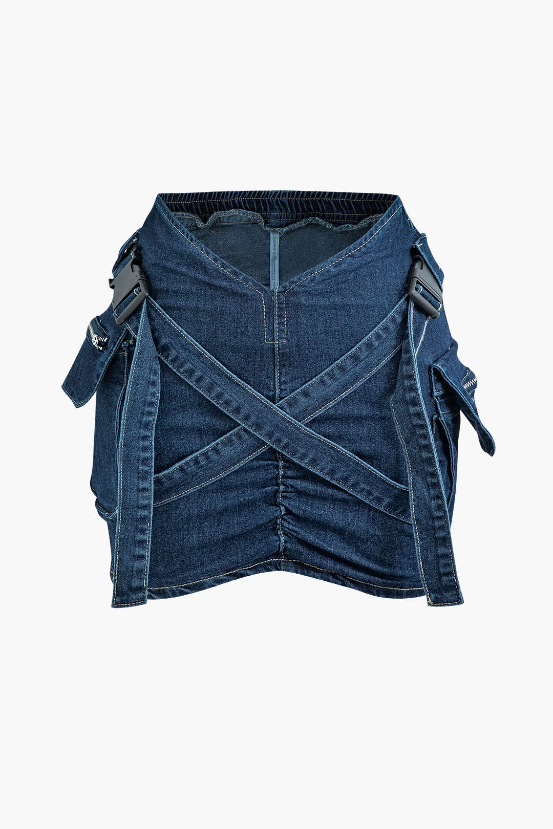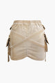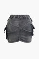 V-waist Buckle Flap Pocket Denim Cargo Skirt