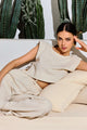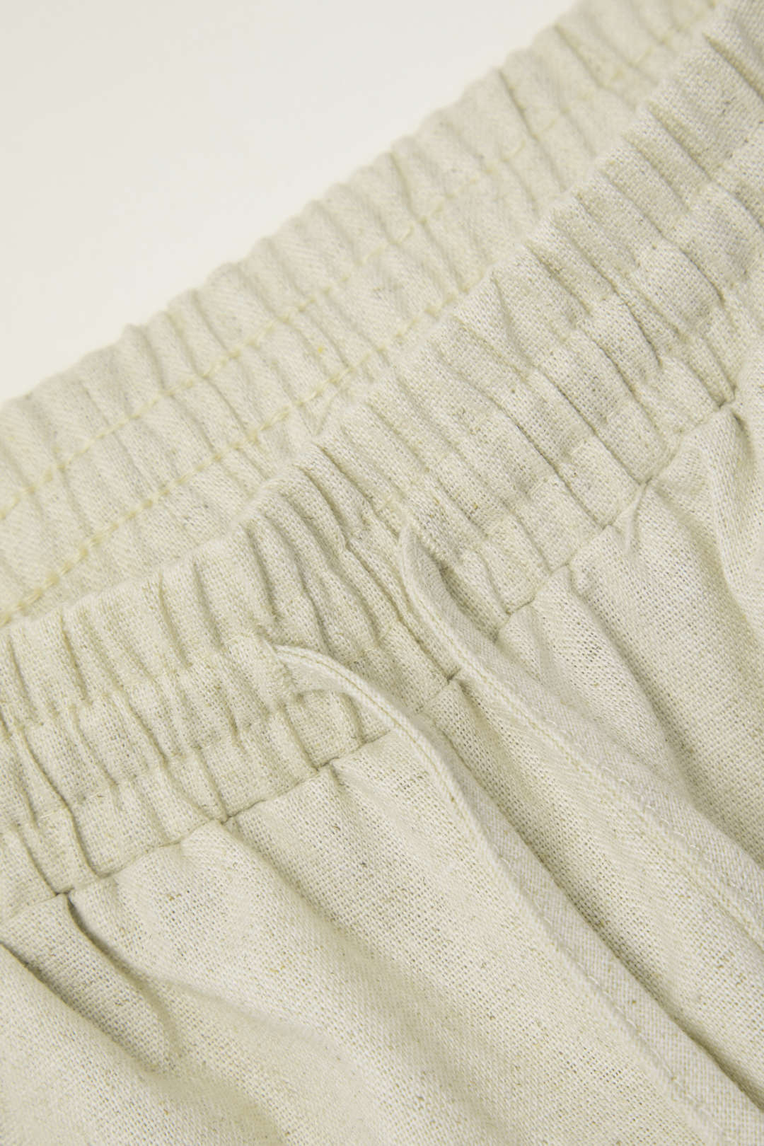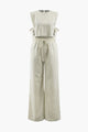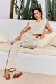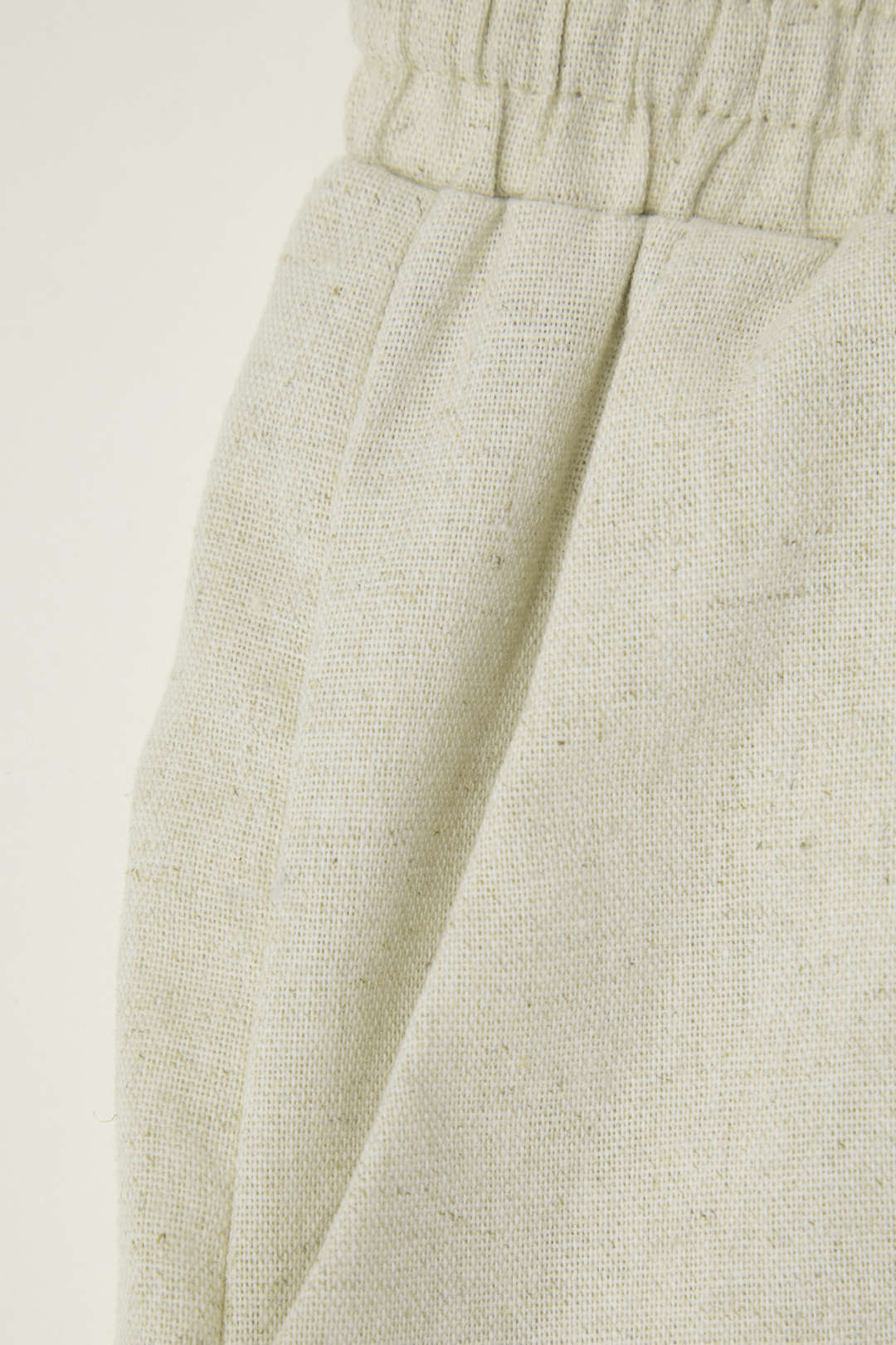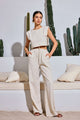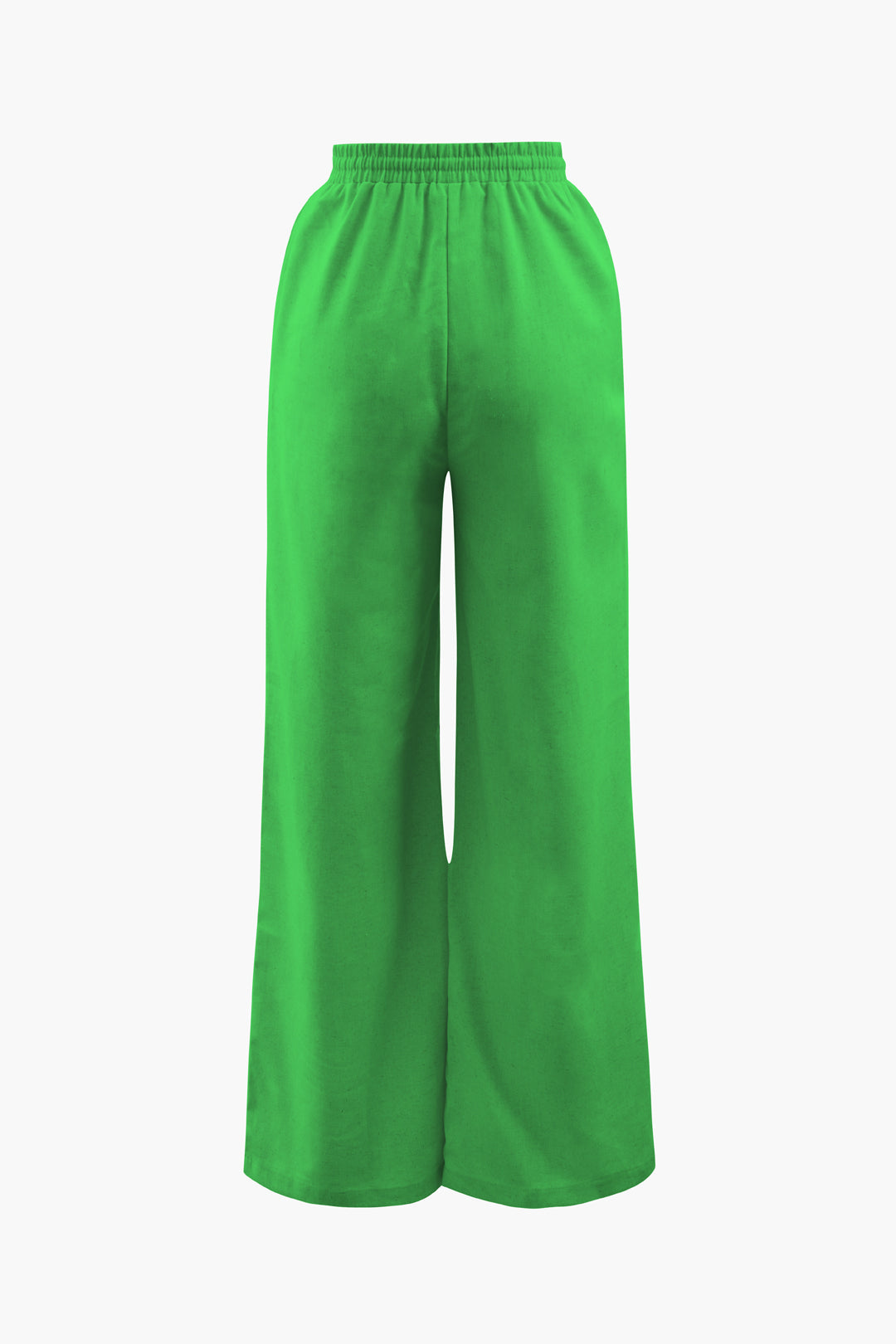 Linen Padded-Shoulder Tie Side Top And Drawstring Pants Set