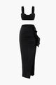 Plisse Knot Front Crop Cami Top And Asymmetric Skirt Set