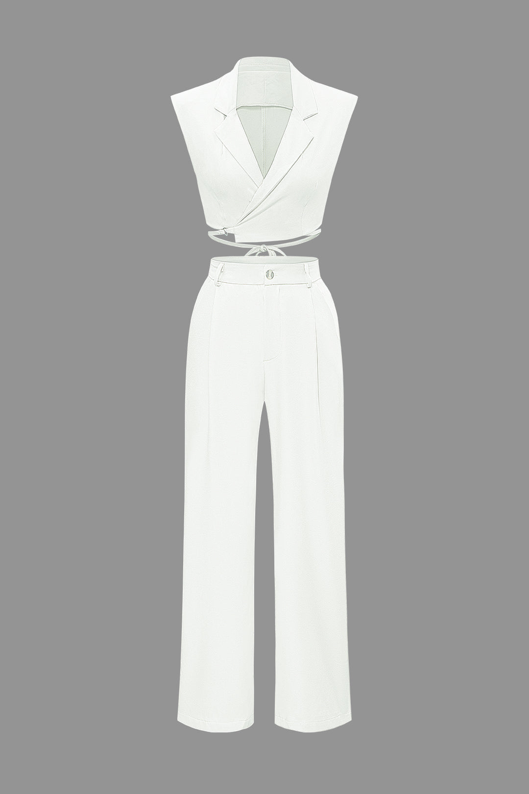 Notched Lapel Tie Back Vest And Straight Leg Suit Pants Set