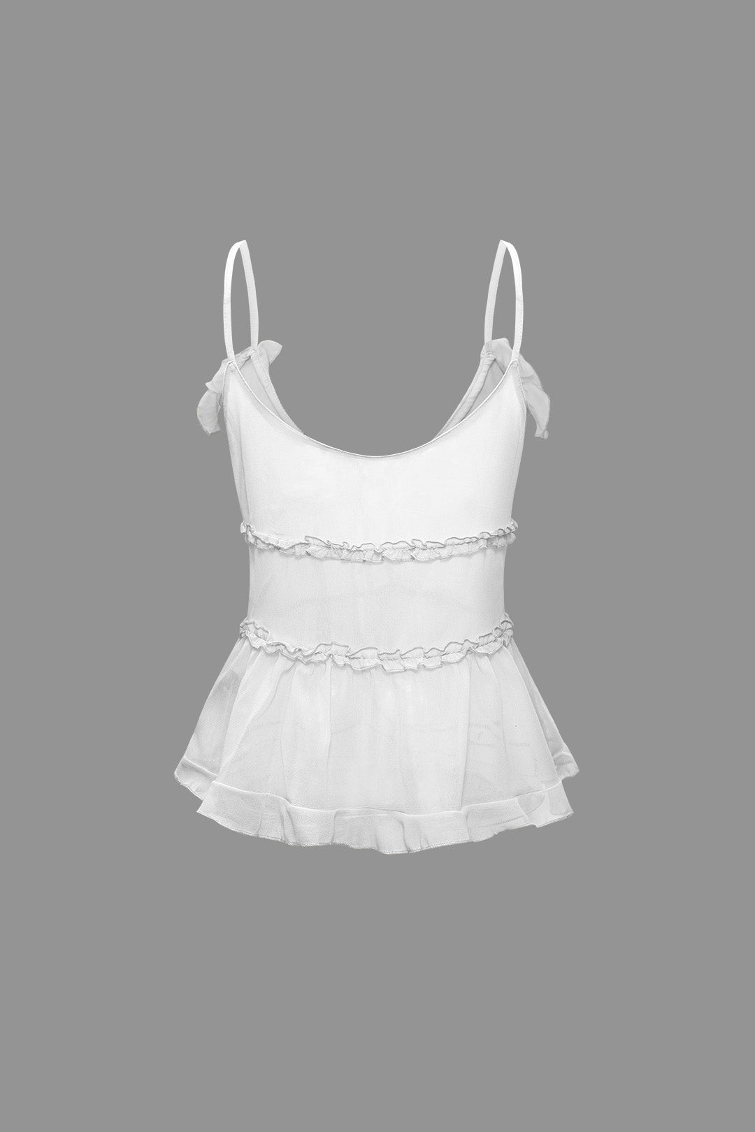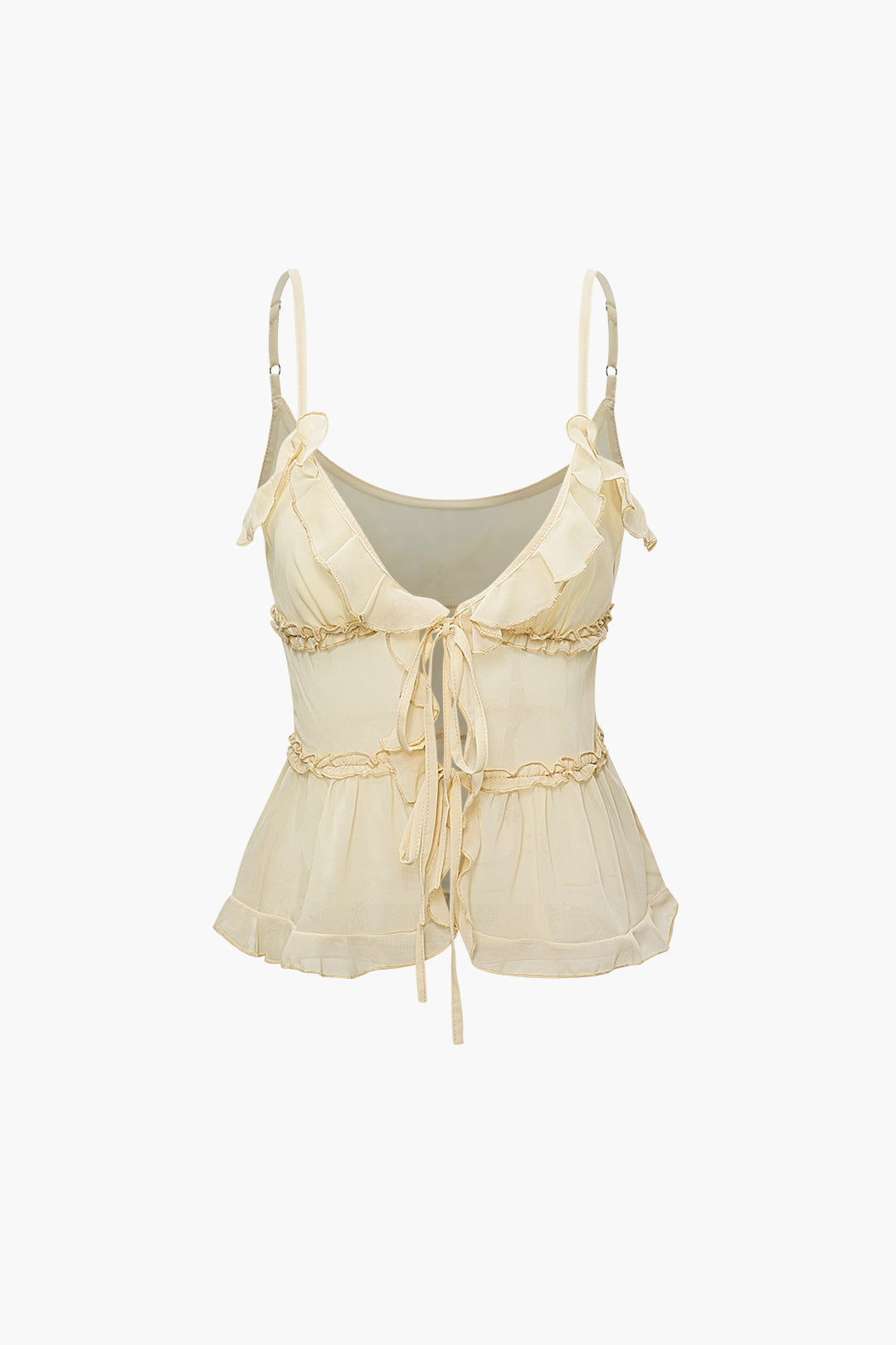 Tie Front Sheer Ruffle Cami Top