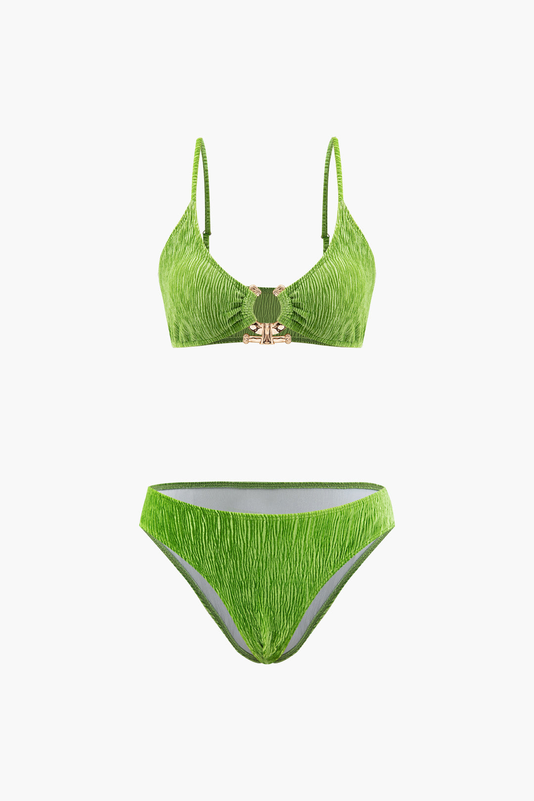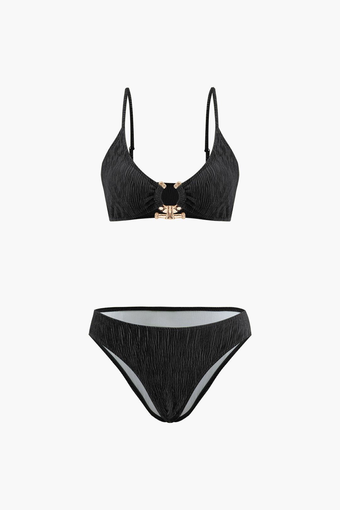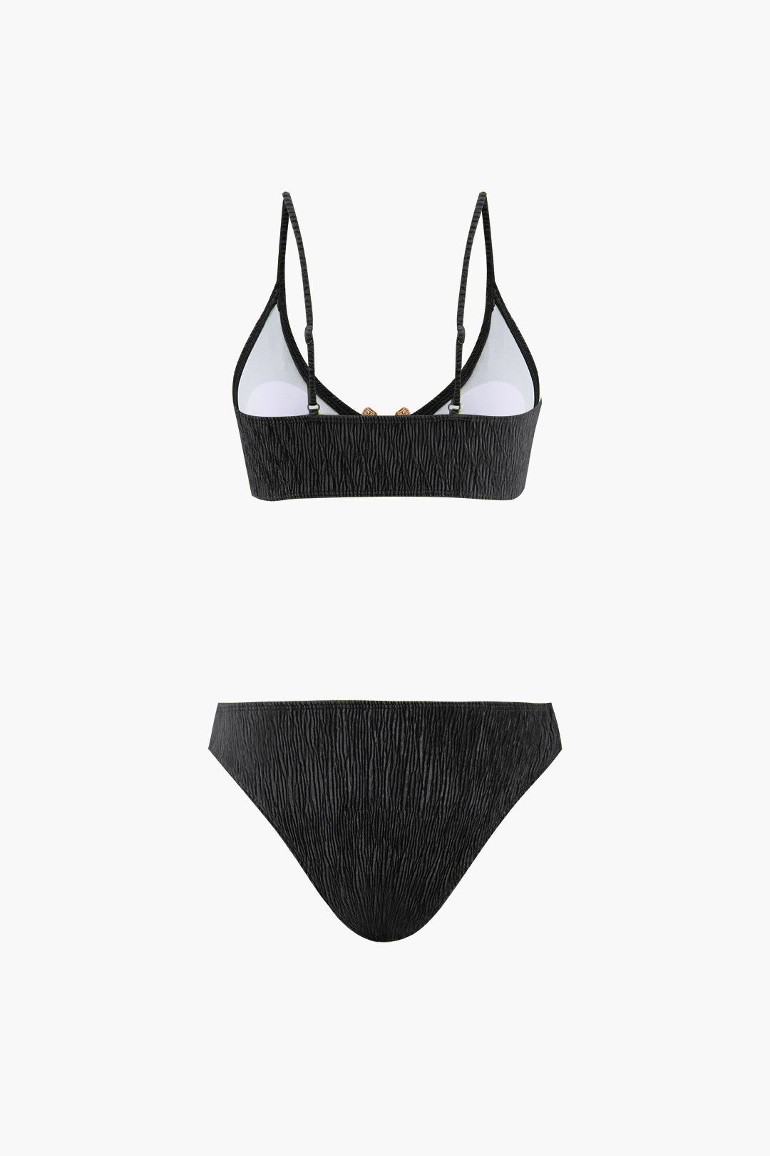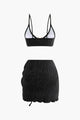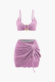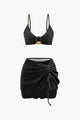Velvet Textured U-ring Bikini And Sarong 3pc Set